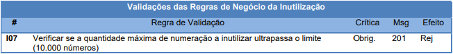 Essa rejeição ocorre ao realizar um registro de inutilização de uma faixa numérica que ultrapasse o limite de 10.000 (dez mil) números.