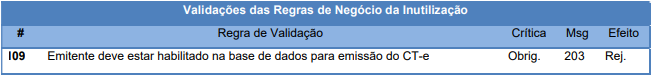 Rejeição 203: Emissor não habilitado para emissão (CT-e)