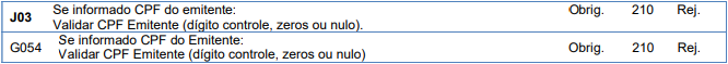 Verificar e validar CPF do Emitente (dígito controle, zeros ou nulo) pois o CPF do Emitente informado está inválido.