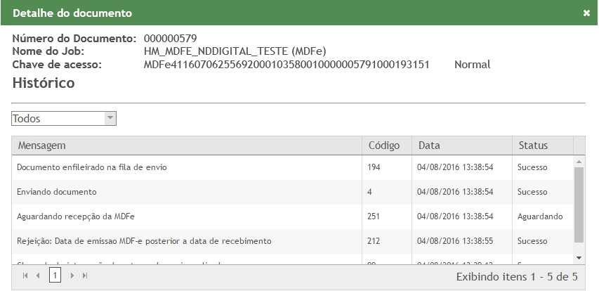 Foi emitida um MDF-e no dia 14/04/2016 e nele foi informado a hora de emissão como 15:00:00. Na Sefaz Estadual, seu horário local é 14:58:00. Como o horário informado no MDF-e é maior que o horário da Sefaz, no momento em que recebeu o documento, este será rejeitado.