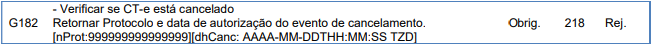 Rejeição 218: CT-e já está cancelado na base de dados da SEFAZ (CT-e)