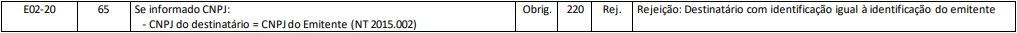 Rejeição 220: Destinatário com identificação igual à identificação do emitente (NFC-e)