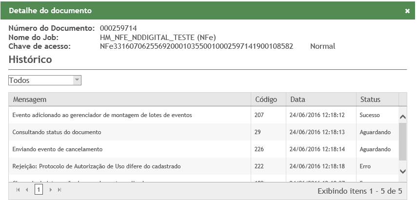 Quando for emitido um Evento de Cancelamento para um documento autorizado e o Número do Protocolo (Campo: detEvento / nProt) de autorização do documento for diferente do informado no Evento de Cancelamento, será retornado à rejeição pelo código 222.