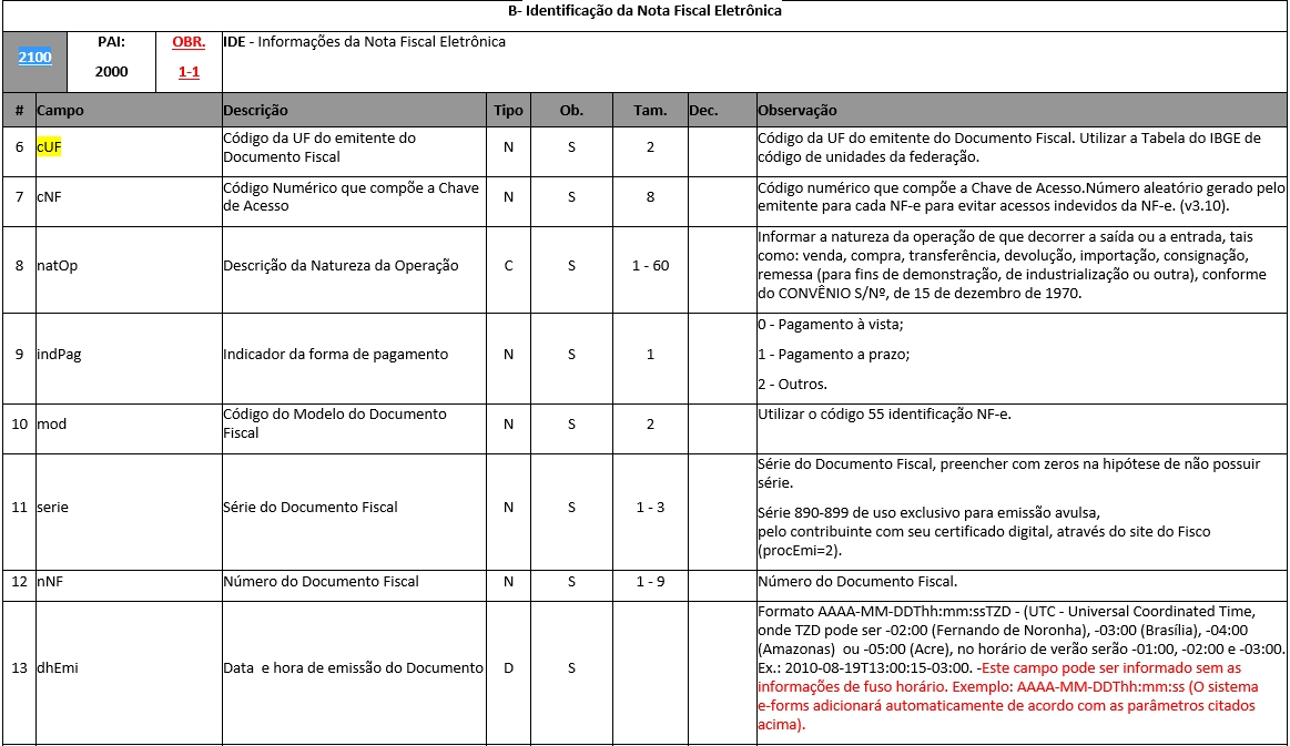 Fonte: ------> Anexo I - Leiaute e Regra de Validação - NF-e e NFC-e