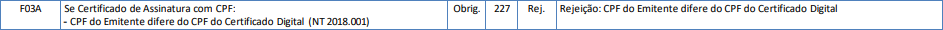 Rejeição 227: CPF do Emitente difere do CPF do Certificado Digital (NF-e)
