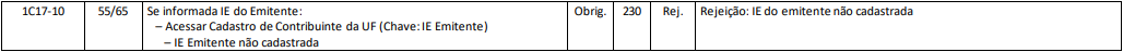 Quando for emitido um documento fiscal e a Inscrição Estadual (Campo: emit / IE) for válida e não estiver cadastrada na Sefaz Estadual, será retornado à rejeição.