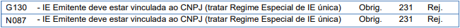 Quando for emitido um documento fiscal e a Inscrição Estadual do Emitente (Campo: emit / IE) não estiver vinculado ao CNPJ informado (Campo: emit / CNPJ) para o mesmo, será retornado à rejeição 231.