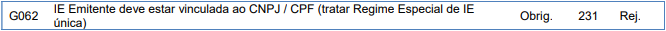 Rejeição 231: IE do emitente não vinculada ao CNPJ / CPF