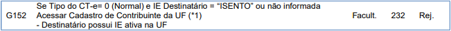 Rejeição 232: IE do destinatário não informada (CT-e)