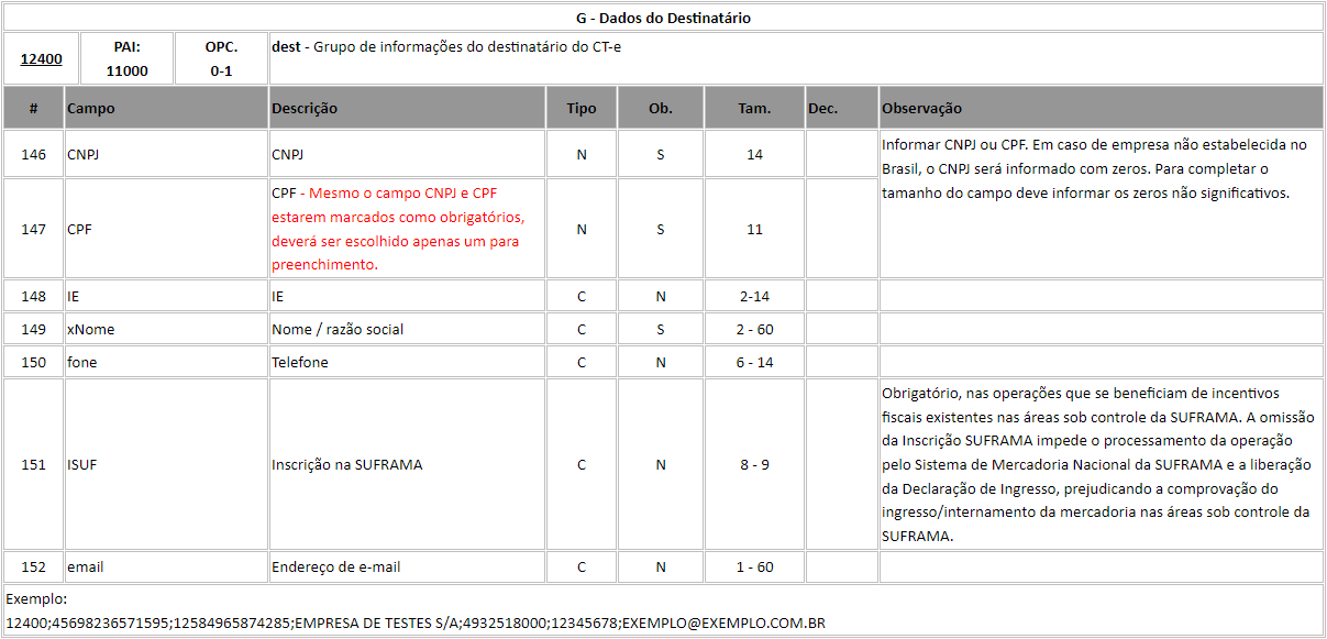 Para clientes que emitem o arquivo CT-e em TXT o campo IE é referente a linha 12400.