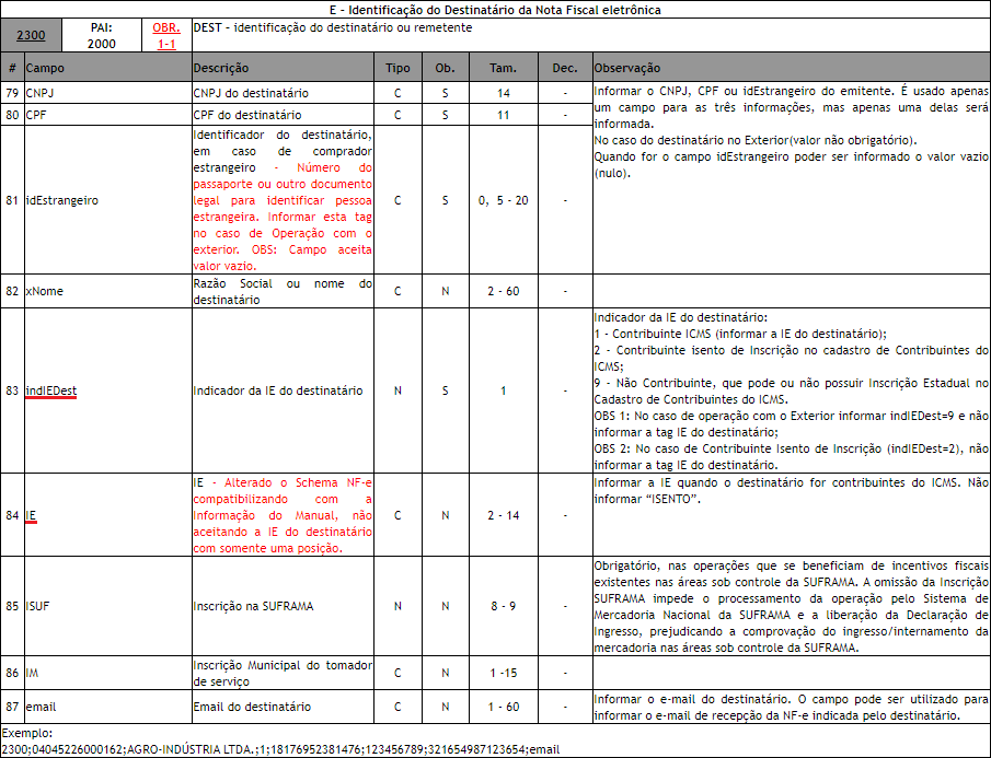 Fonte: ------> Anexo I - Leiaute e Regra de Validação - NF-e e NFC-e