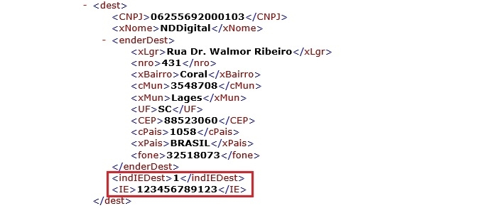 Rejeição 232: IE do destinatário não informada (NF-e)