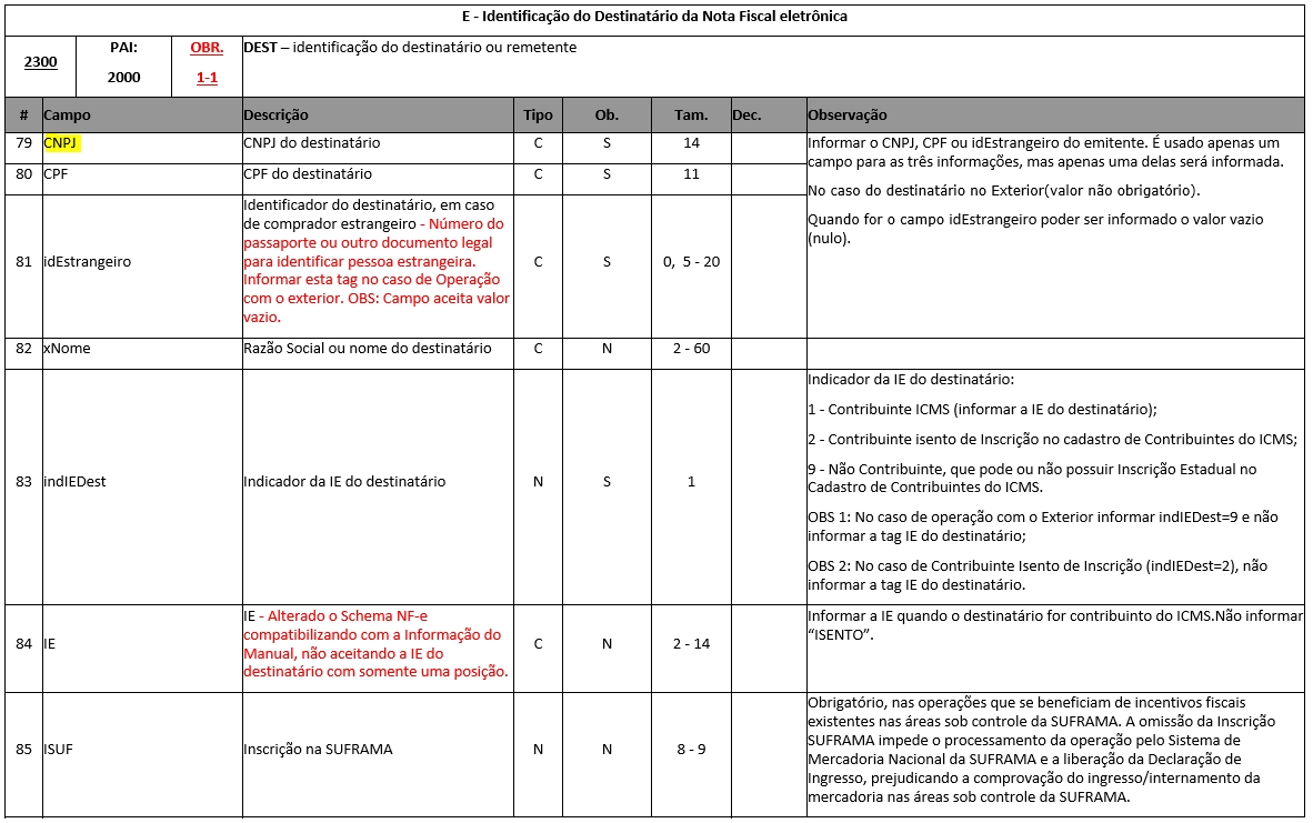Para clientes que emitem o arquivo NF-e em TXT a tag CNPJ do destinatário é referente a linha 2300 no 1º campo, conforme podemos visualizar abaixo nos manuais da NDD Tech.