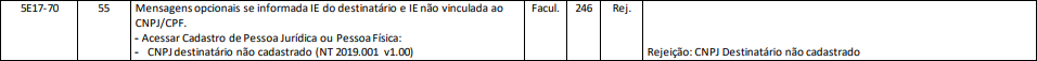 Rejeição 246: CNPJ Destinatário não cadastrado (NF-e)
