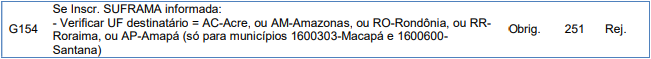 Essa rejeição ocorre quando a UF/Município destinatário não pertence a SUFRAMA.