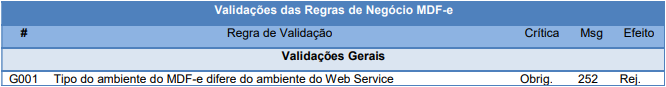 Rejeição 252: Ambiente informado diverge do Ambiente de recebimento (MDF-e)