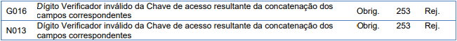 Essa rejeição ocorre quando o Dígito Verificador da Chave de acesso composta está inválido.