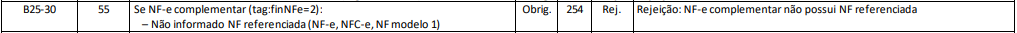 Rejeição 254: NF-e complementar não possui NF referenciada (NF-e)