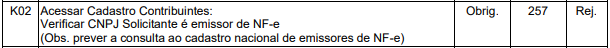 Verificar se o CNPJ Solicitante é emissor de NF-e. Esta validação pode ser realizada no Sintegra ou Cadastro Centralizado de Contribuintes (CCC).