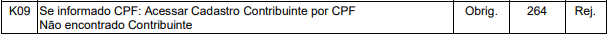 Essa rejeição ocorre quando o CPF da consulta não está cadastrado como contribuinte na UF.