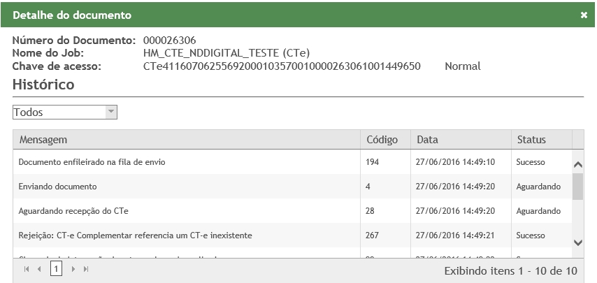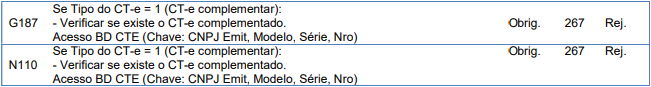 Rejeição 267: CT-e Complementar referência um CT-e inexistente (CT-e)