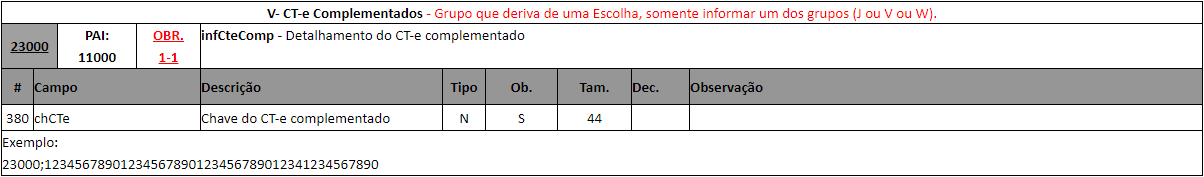 Para clientes que emitem o arquivo em TXT o campo infCteComp é referente a linha 23000, conforme podemos visualizar abaixo nos manuais da NDD.