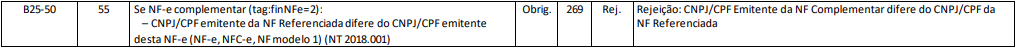 Essa rejeição ocorre quando o CNPJ/CPF do Emitente da NF Complementar diverge do CNPJ/CPF da NF referenciada complementado.
