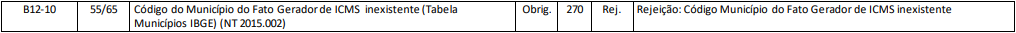 Rejeição 270: Código Município do Fato Gerador de ICMS inexistente (NF-e)