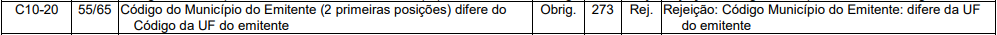 Essa rejeição ocorre quando o Código Município do Emitente: difere da UF do emitente.