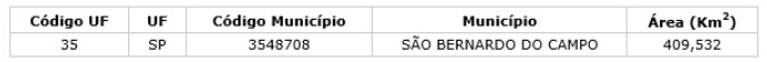 Foi informado no campo o código referente ao Município de São Bernardo do Campo no Estado de SP: