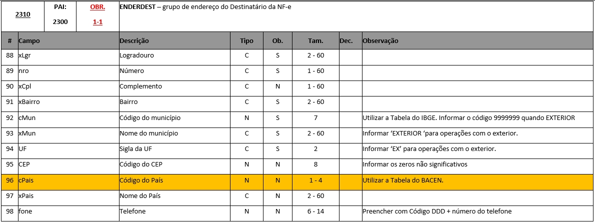 Fonte: ------> Anexo I - Leiaute e Regra de Validação - NF-e e NFC-e