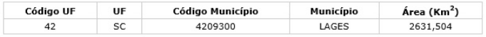 Porém o código da para o Município de Lages no Estado de SC é outro: