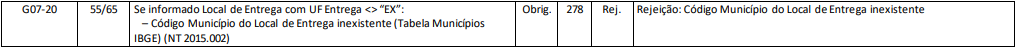 – Código Município do Local de Entrega inexistente (Tabela Municípios IBGE) (NT 2015.002).