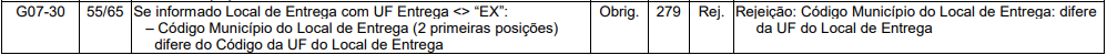 Rejeição 279: Código Município do Local de Entrega: difere da UF do Local de Entrega (NF-e)