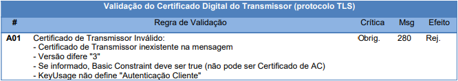 Essa rejeição ocorre quando o Certificado Transmissor está Inválido.
