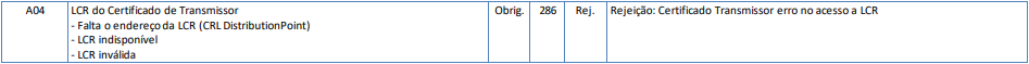A rejeição 286 ocorre nas seguintes situações: