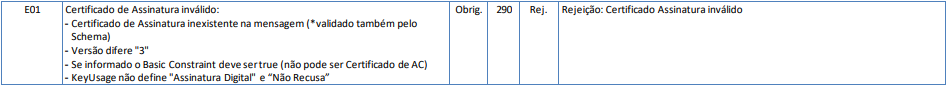 Essa rejeição ocorre quando o Certificado de Assinatura está inválido.