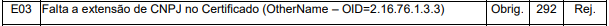 Rejeição 292: Certificado Assinatura sem CNPJ/CPF (NF-e)