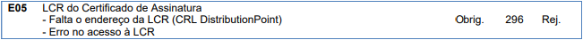 Rejeição 296: Certificado Assinatura erro no acesso a LCR (CT-e)