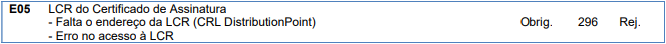 Caso a Sefaz não consiga consultar essa lista, seja por uma perda de conexão com o endereço da Lista ou não ter sido disponibilizado pela certificadora essa Lista, será retornado à rejeição.