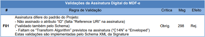 Rejeição 298: Assinatura difere do padrão do Projeto (MDF-e)