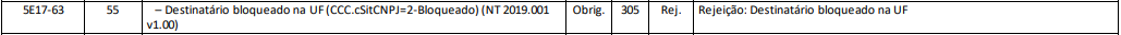 Rejeição 305: Destinatário bloqueado na UF (NF-e)