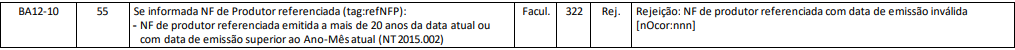 Rejeição 322: NF de produtor referenciada com data de emissão inválida (NF-e)