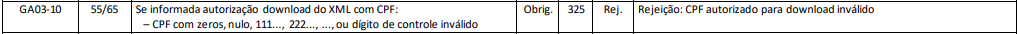 Rejeição 325: CPF autorizado para download inválido (NF-e)