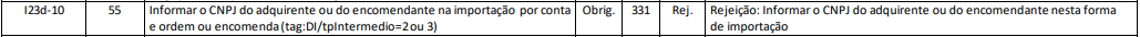 Rejeição 331: Informar o CNPJ do adquirente ou do encomendante nesta forma de importação (NF-e)