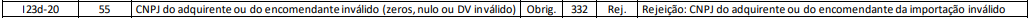 Rejeição 332: CNPJ do adquirente ou do encomendante da importação inválido (NF-e)