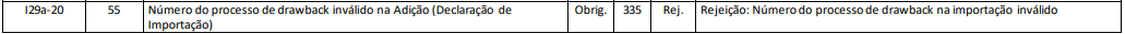 Rejeição 335: Número do processo de drawback na importação inválido (NF-e)