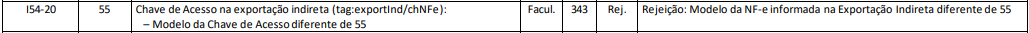 Rejeição 343: Modelo da NF-e informada na Exportação Indireta diferente de 55 (NF-e)