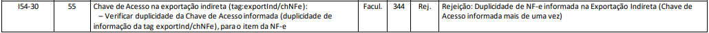 Rejeição 344: Duplicidade de NF-e informada na Exportação Indireta (Chave de Acesso informada mais de uma vez) (NF-e)