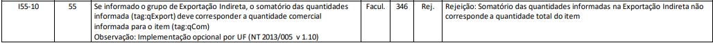 Rejeição 346: Somatório das quantidades informadas na Exportação Indireta não corresponde a quantidade total do item (NF-e)